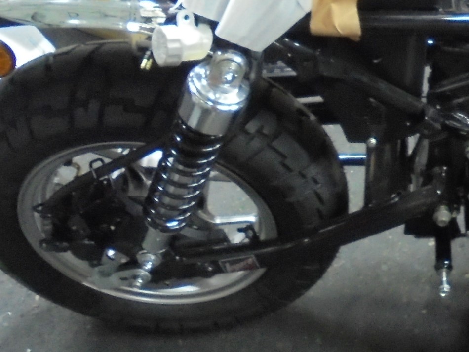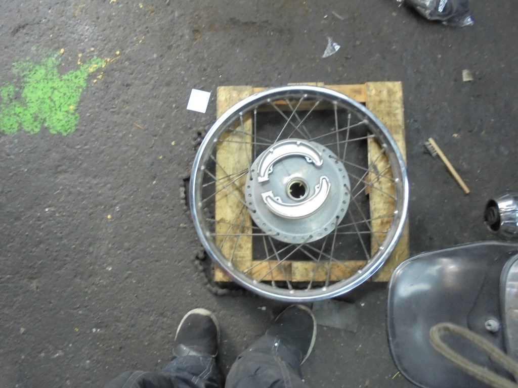前後ホイールともにホイールベアリング打ち換え新品タイヤをいれました。ブレーキシューも新品に交換しワイヤーも再生。