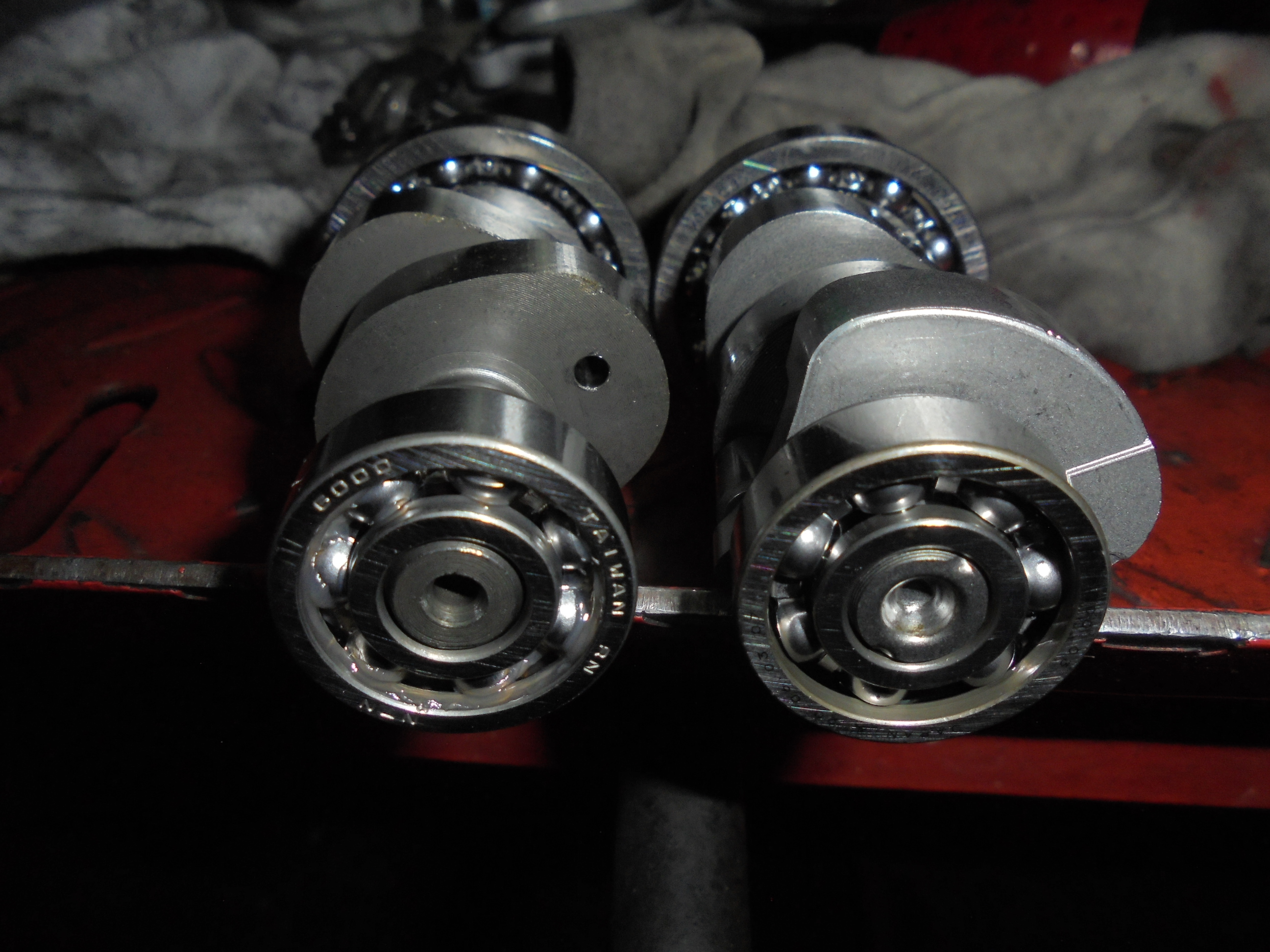 こちらはホイールの穴を旋盤で修正し、そこにベアリングの外形サイズに作成した金属レースをプレスで圧入したものです。