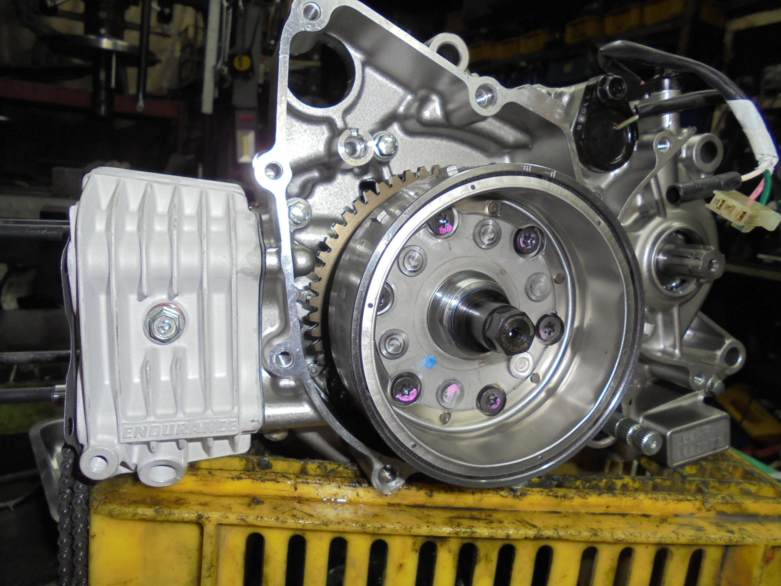 エンジンを下ろしクラッチフライとフライホイールを外し