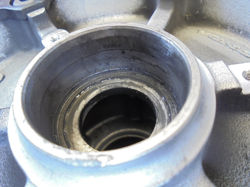 穴が変形して削れているため新品のベアリングがスカスカで打ち込めないようになっておりました。